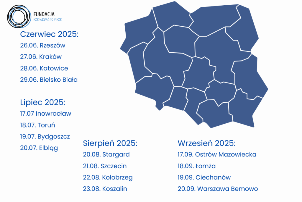 W dniach 14-17 maja mobilny bus odwiedził 4 miasta na Dolnym Śląsku: Wrocław, Jelenią Górę, Legnicę, Nową Sól. Teraz zmierzamy bardziej na południe. Już 26 czerwca czekamy na Ciebie w Rzeszowie, a w trzech kolejnych dniach w Krakowie, Katowicach i Bielsko Białej.