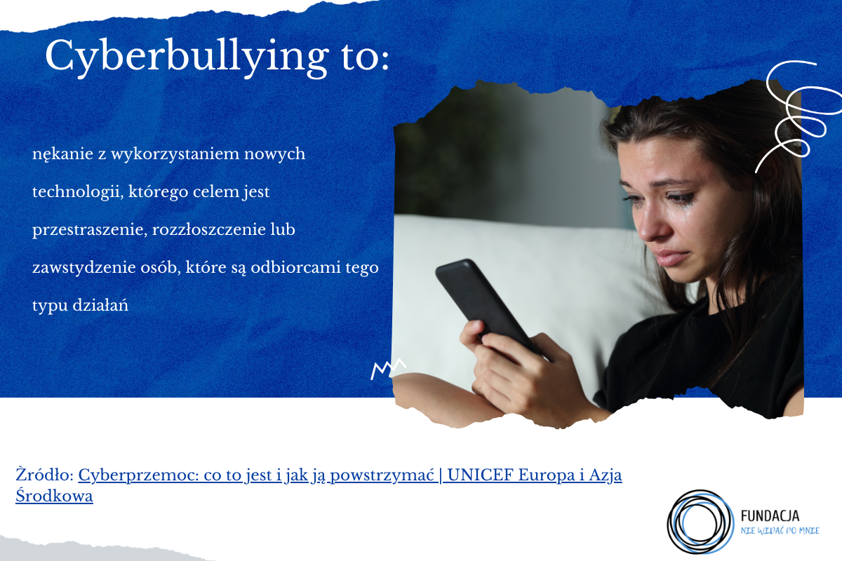 Natomiast według definicji UNICEF cyberbullying jest to nękanie z wykorzystaniem nowych technologii, którego celem jest przestraszenie, rozzłoszczenie lub zawstydzenie osób, które są odbiorcami tego typu działań. [2]