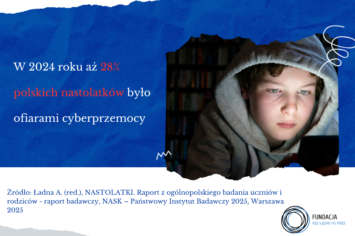 Zgodnie z najnowszym raportem NASK „Nastolatki” [3], opublikowanym we wrześniu 2025 r. aż 28% nastolatków było ofiarami cyberprzemocy: