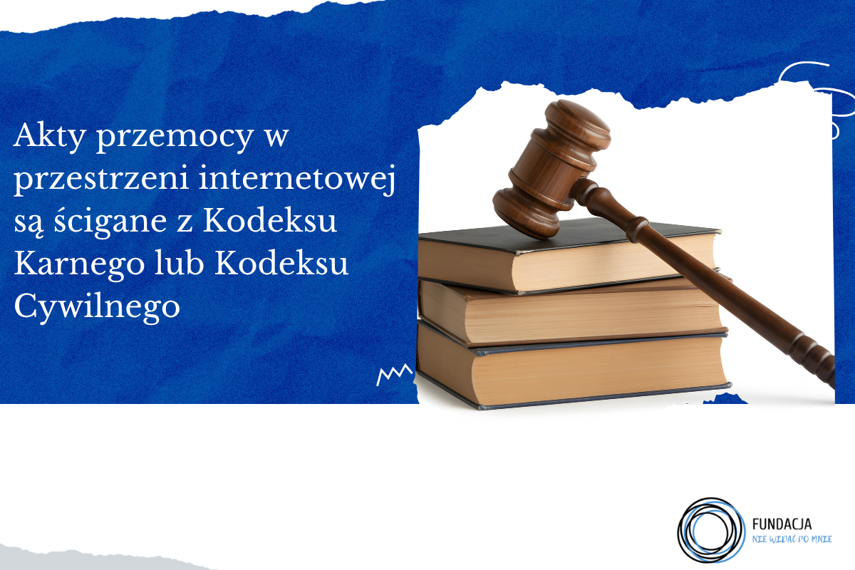 To jednak tylko pierwszy krok. Warto pamiętać, że cyberbullying wśród dzieci i nastolatków jest ścigany na podstawie przepisów Kodeksu Karnego lub Kodeksu Cywilnego. Pierwszy z wymienionych aktów przewiduje kary, m.in. za: