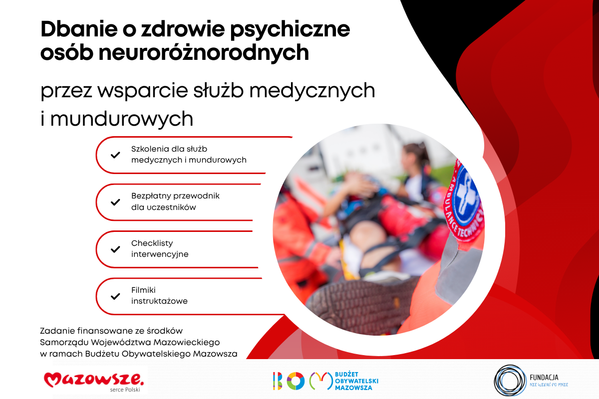 “Dbanie o zdrowie psychiczne osób neruroróżnorodnych przez wsparcie służby medycznych i mundurowych” był to stosunkowo krótki, ale nie mniej ważny projekt, realizowany w okresie sierpień-listopad 2025 r. Skierowany był do: